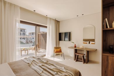 A refined and cozy retreat featuring sleek contemporary decor, a plush king-size bed or twin beds, and elegant lighting. Thoughtfully designed for relaxation, this room offers a private balcony, modern amenities and a tranquil ambience, making it perfect for a stylish escape.