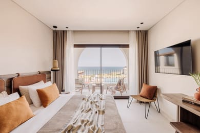 Enjoy breathtaking sea views from your private balcony in this chic, well-appointed room. With stylish interiors, premium bedding, and a calming colour palette, it provides a serene atmosphere where guests can unwind while embracing the captivating coastal landscape of Cabo.